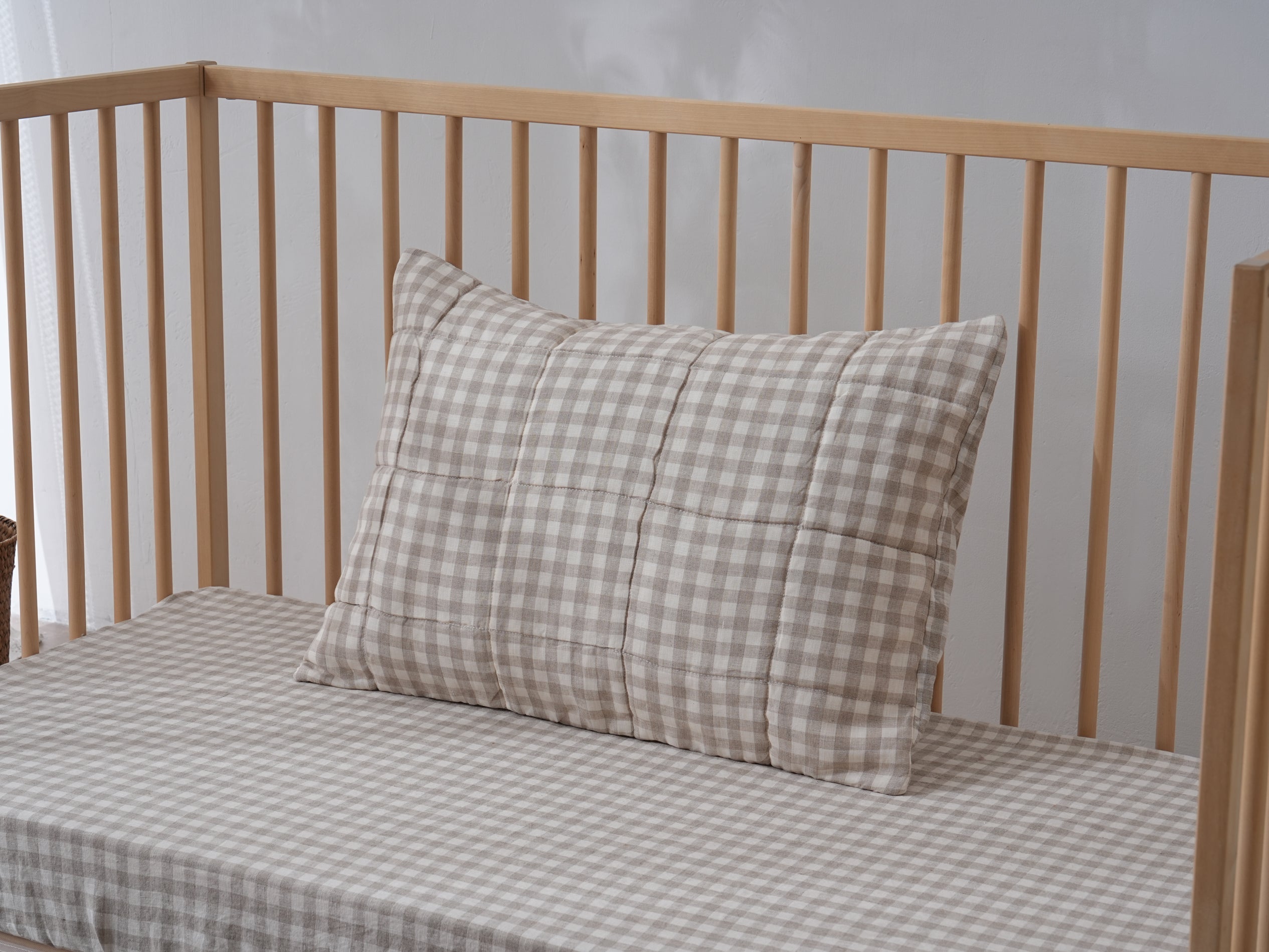Quilted Linen Cot Blanket - Beige Gingham Quilted Linen Cot Blanket - Beige Gingham
