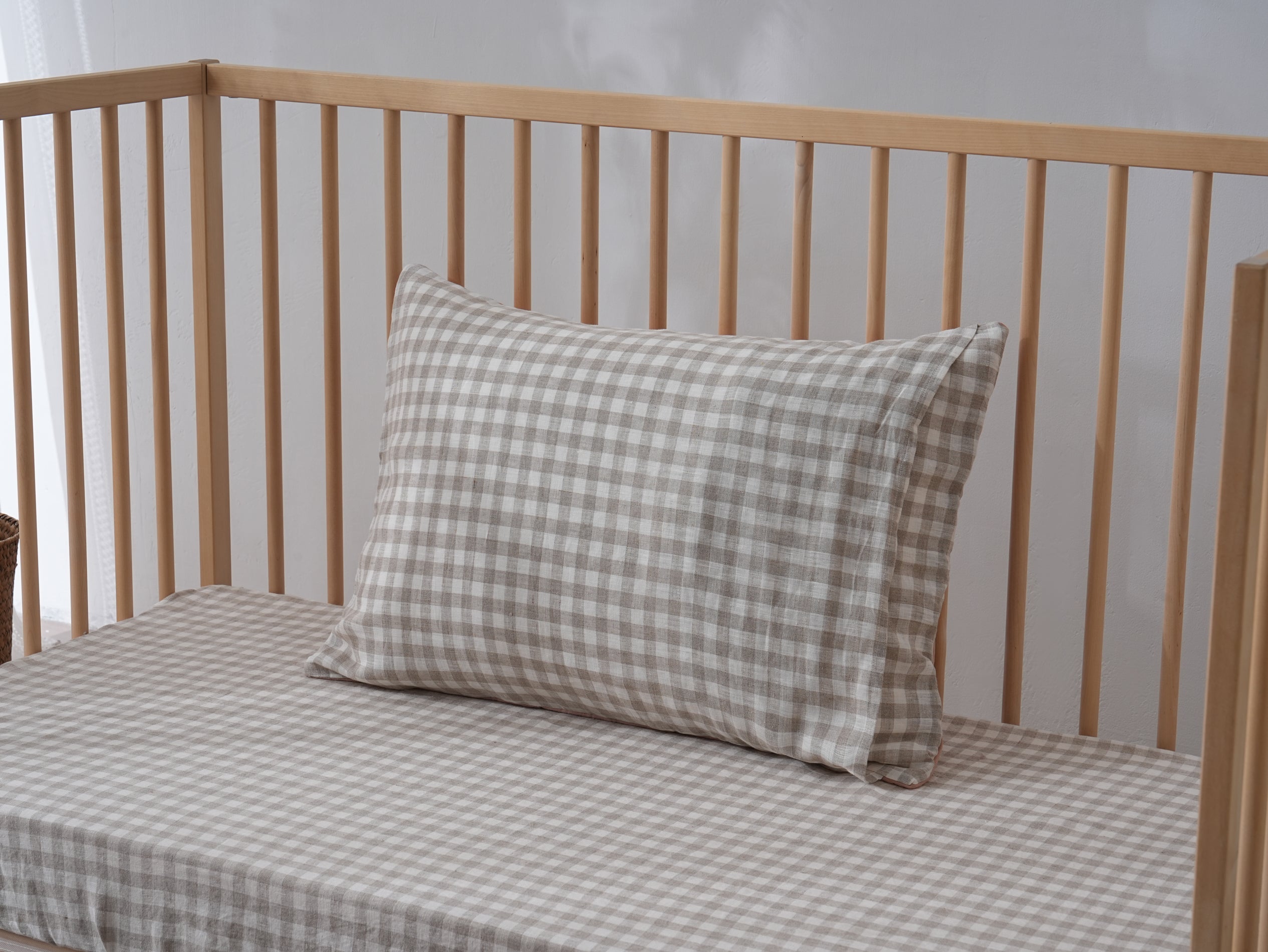 Quilted Linen Cot Blanket - Pink Clay + Beige Gingham Quilted Linen Cot Blanket - Pink Clay + Beige Gingham