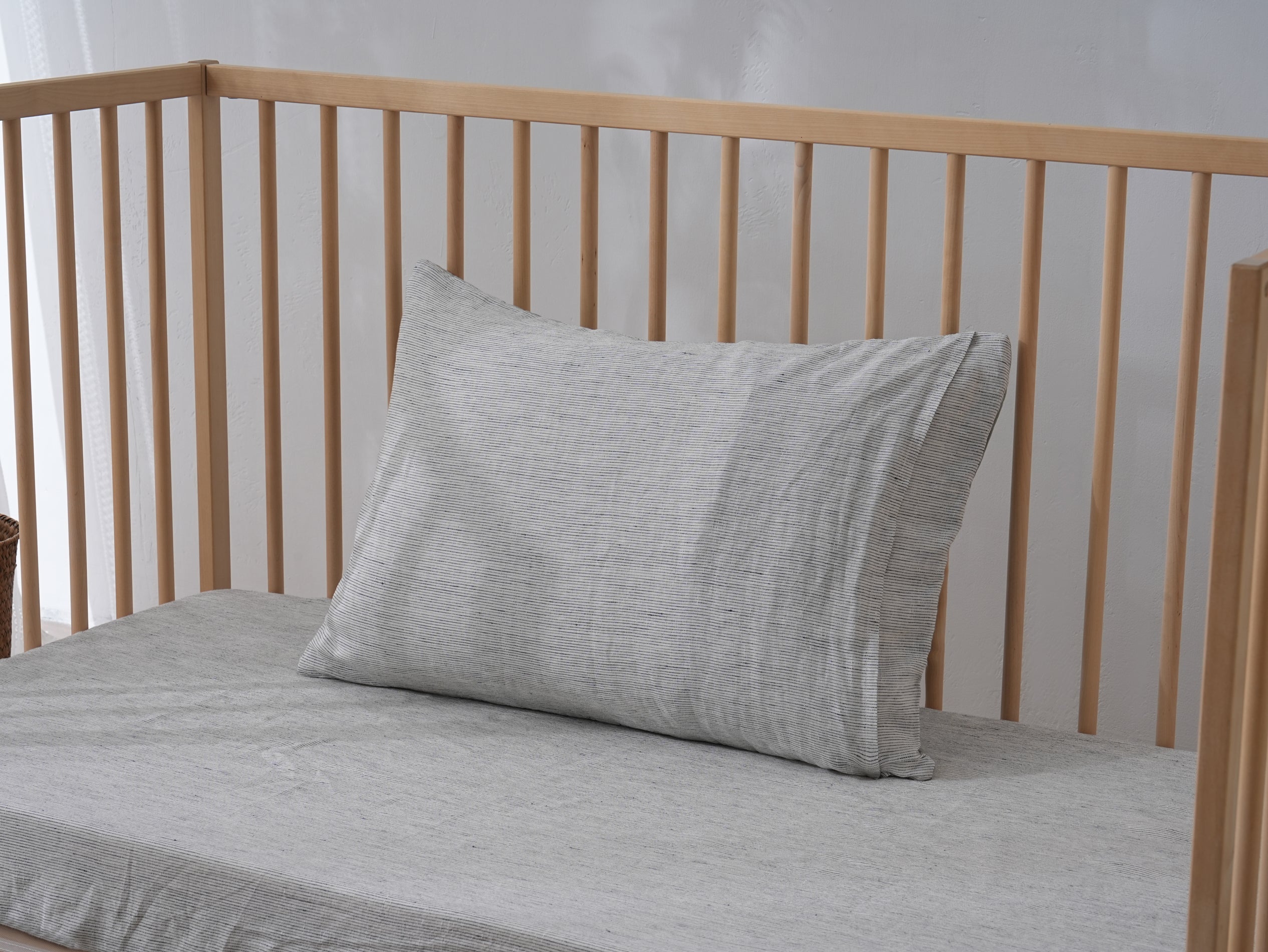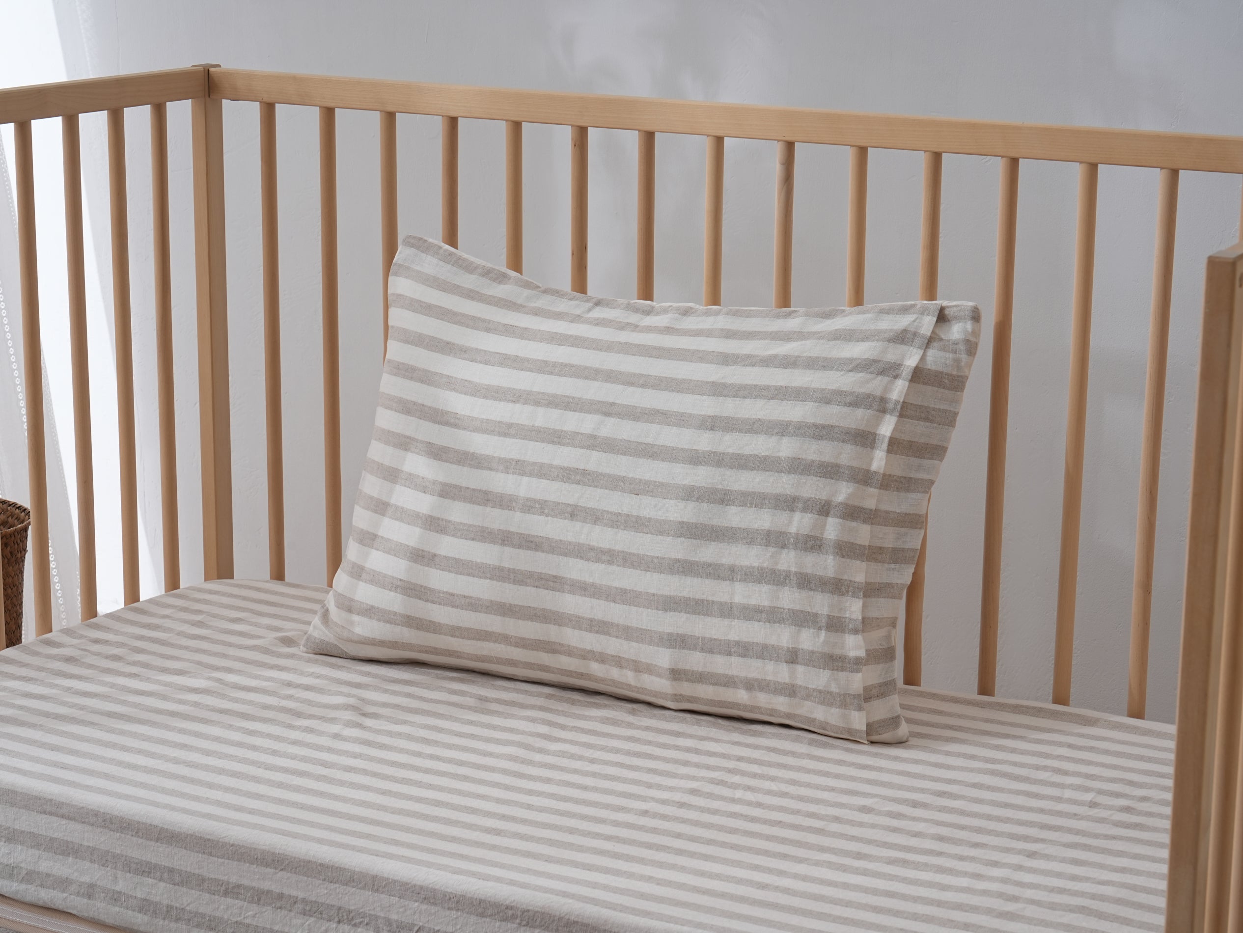 Fitted Linen Cot Sheet - PINSTRIPE - Selah + Stone Fitted Linen Cot Sheet - PINSTRIPE - Selah + Stone